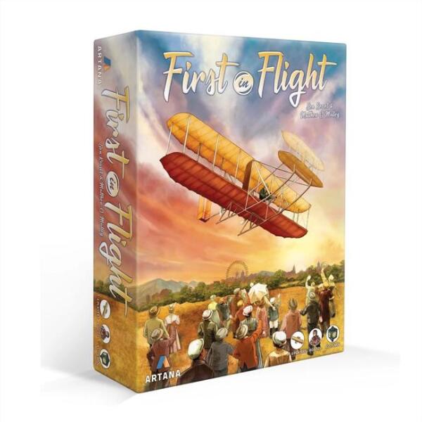 A First in Flight egy pakliépítős, szerencsét próbáló játék, mely a korabeli repülésért folytatott küzdelemről szól. A játékosok a Wright testvérek, Samuel Langley és más pilóta úttörők szerepébe bújva versenyeznek a modern repülőgépeket megelőző "repülőgépek" megépítéséért és vezetéséért. Minden játékos repülőtervét egy kártyapakli képviseli, amit