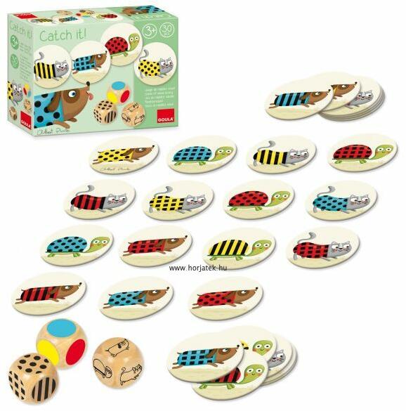 Miért jó választás a Találd meg! - Kombinációs társasjáték - GOULA?A Goula elhozta az egyik legcukibb szín-, forma-, és mintafelismerős játékot. Fontos, hogy jó megfigyelő legyél és persze gyorsnak is kell lenned. Végtelenül egyszerű a játékszabály: a három kocka megmutatja, hogy melyik korongot kell megkeresni. (Pl. : piros, csíkos, cica)Jópofa fejlesztőjáték, melye