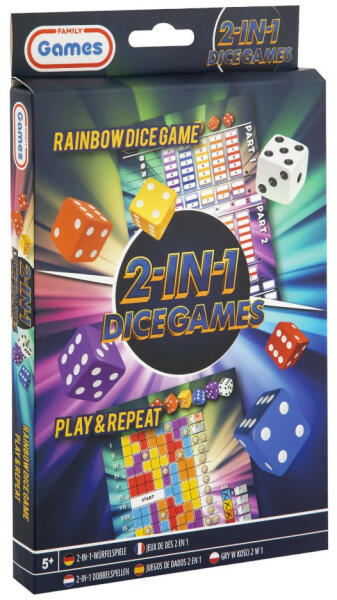 2-in-1 Dice Games - Kockajáték készlet - 2 féle játék 2-in-1 Dice Games - Kockajáték készlet - 2 féle játék . A 2 az 1-ben kockajáték ideális választás minden korosztálynak, akik szeretnek társasjátékozni és szórakozni. A csomagban két különböző játék található, így változatos és izgalmas játékélményben lehet részed. A dobozban hat kockával és kétféle po