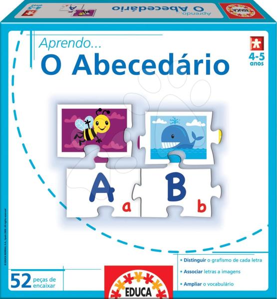 Készségfejlesztő játék Ismerkedem az ábécével a spanyol Educa vállalat műhelyéből egy modern gyerekjáték kisfiúknak és kislányoknak 4-5 éves kortól. Ez a praktikus játék készlet 52 darabos, vidám színes ábrákat és egyes betűket az ábécéből (kis- és nagybetűket) rejt, melyeket gyerkőcének párosítania kell egymással. Játék közben a gyerekek gyakorolják az