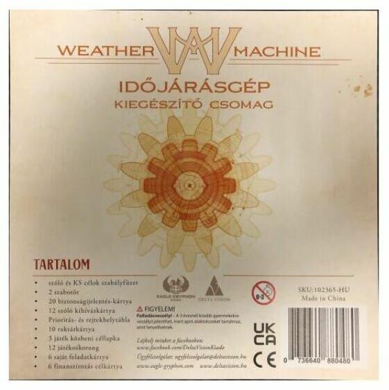 Az Időjárásgép társasjátékban Te és barátaid lehettek azok a tudósok, akik Sêni Lativ professzorral együtt dolgoznak. A célotok az időjárás befolyásolása, hogy megakadályoztátok az árvizeket, a szárazságot és az erős viharokat. De vigyázat, mert minden beavatkozásnak következményei vannak, és az időjárást manipuláló eszközök használata nem várt hatásokkal j