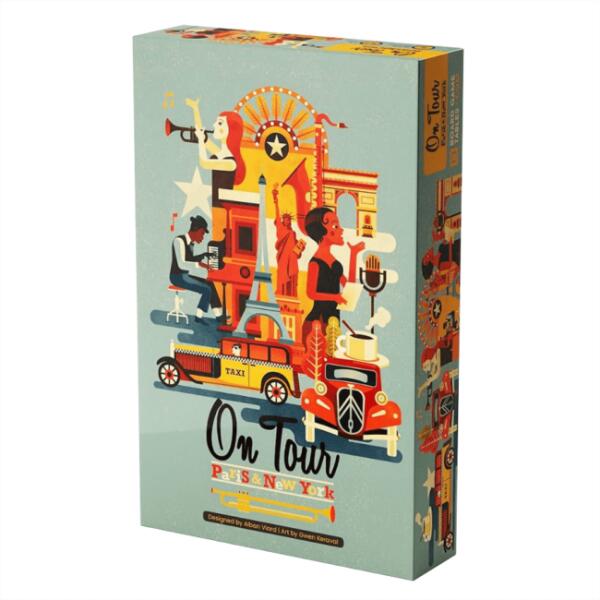 Az On Tour Paris & New York egy vadonatúj önálló játék, amely az eredeti On Tour dizájnján alapul, és új utazási lehetőségeket kínál! A célod, hogy a leghosszabb és leghatékonyabb útvonalat tervezd meg e két csodálatos városon keresztül, amelyben zenészek vagytok az 1920-as években, akik megpróbálnak minél több jazzklubban játszani. Minden fordulóban két tízold
