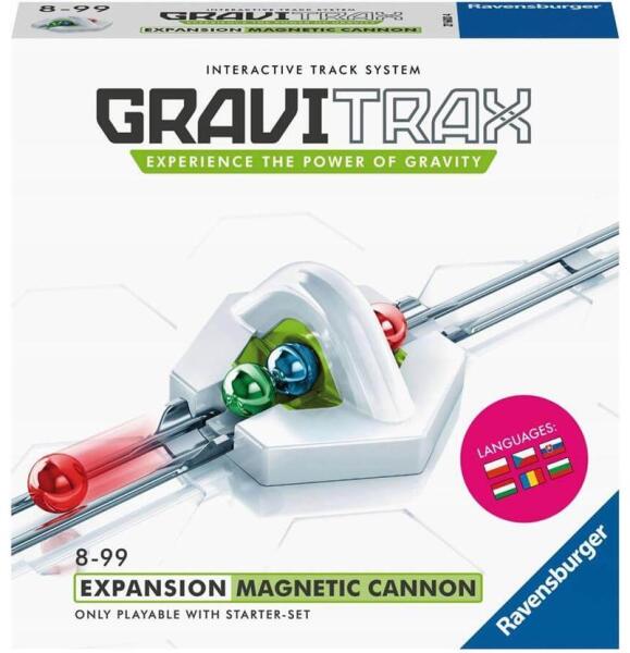 Ravensburger - GraviTrax mágneses ágyú kiegészítő készlet (22413) Még több energia a pályáidra! A készlet segítségével látványos magasságkülönbségeket győzhetsz le, így a golyó még tovább gurul. Bővítsd ki a mágneses ágyúval a GraviTrax kezdőkészleted. Növeld a kombinációs lehetőségeidet, és építs még összetettebb golyópályavilágokat. Kizárólag valam