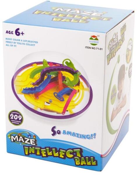 Vezesd végig a golyót a labdába épített pályán! A 3D labirintus labda segíti a kézügyesség fejlődését, és türelemre tanítja a játékost. A fém golyót végig kell vezetni egy akadálypályán, aminek a szakaszai színekkel vannak jelölve, a játék összesen 96 szakaszt tartalmaz. A játékhoz biztos kezekre és kötélidegekre van szükség. A csomagolás méretei: 18 x 18 x 2