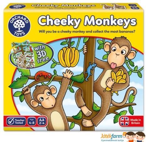 Mókás Majmok - Orchard Toys társasjáték Játszatok együtt a majmokkal, és gyűjtsetek össze minél több banánt! Vajon ki lesz a legügyesebb? Aki bátrabb, vagy aki taktikázik? A társasjáték nem csak kedves figurákkal köti le a gyerekeket, hanem egy látványos, 3 dimenziós játéktáblával is. Pörgess a szerencsekerékkel, majd járj el aszerint: felteszel egy majmot a farkán