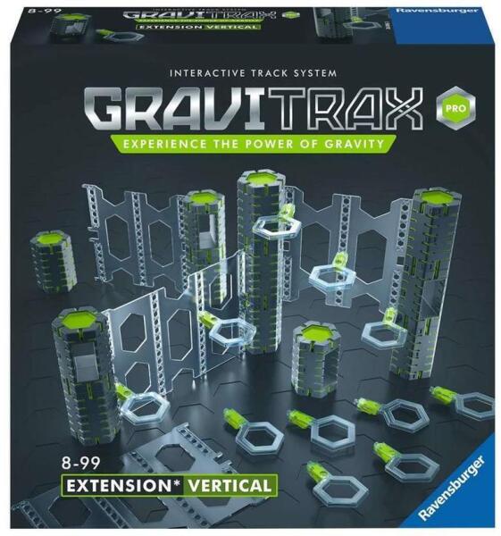 Ravensburger - GraviTrax Pro extra magasító kiegészítő készlet Sokszorozd meg a lehetőségeket! Ezzel a készlettel kibővítheted a golyópályarendszeredet, építőelemekkel kombinálhatod a GraviTrax kezdőkészleted. A függőleges hosszabbítás megkönnyíti az elemek elhelyezését a pályán pontosan ott, ahol szükség van rájuk. A pályák rugalmasan építhetők több szinten e