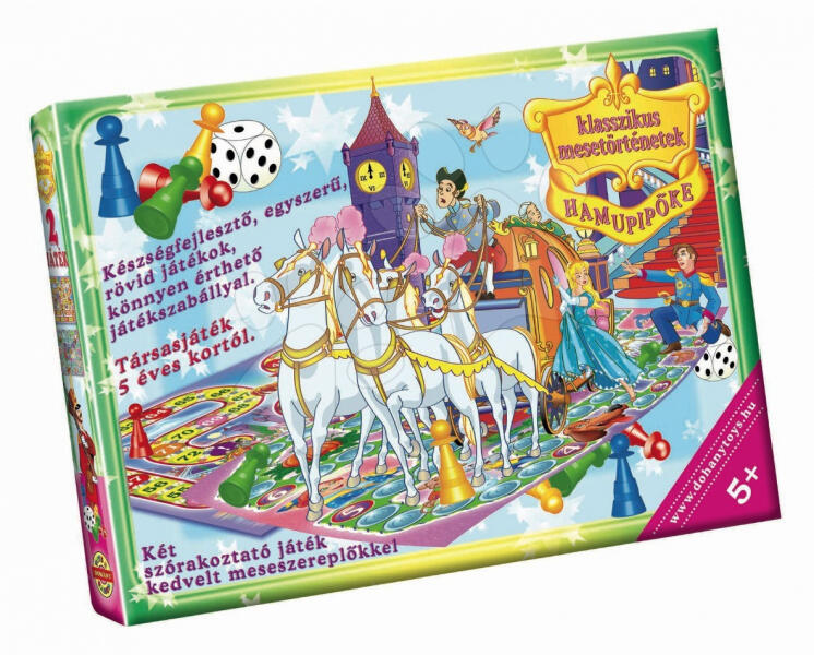 Klasszikus társasjáték Hamupipőke egy csodálatos játék mesemotívummal gyerekeknek 5 éves kortól . Gyerek társasjáték hagyományos Ki nevet a végén stílusban, tehát a szabályok nagyon egyszerűek. Talál a csomagolásban 2 különböző játéktáblát gyönyörű színes képekkel meséből, melyet mindannyian jól ismerünk – Hamupipőkéről és megálmodott hercegéről, já