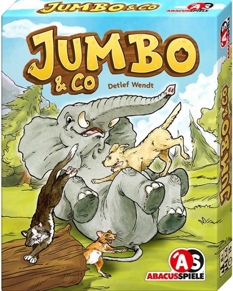 Abacus Jumbo & Co kártyajáték. . A Jumbo&Co egy nagyon izgalmas gyorsasági kártyajáték, amolyan tipikus macska-egér játék. A kutya megkergeti a macskát, a macska pedig az egeret, az egértől viszont fél az elefánt, aki a kutyát kergeti! Ha a valóságban nem is feltétlen, ebben a játékban egészen biztosan így van. Játékszabályok: A pakli 96 lapból áll, amiből mind
