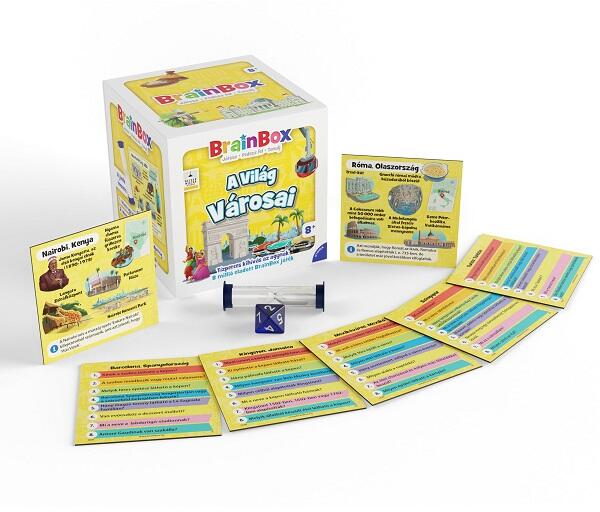 Brainbox A világ városai társasjáték - ÚJ Játsszunk együtt, tanuljunk együtt. A Brainbox-al játék a tanulás! Most kiderülhet, mennyire ismered a világ híres városait és milyen információkat vagy képes megjegyezni a városokról. De erre mindössze 10 másodperc áll rendelkezésedre. Jegyezz meg minél több információt a városról, majd válaszold meg a kérdéseket, hogy m