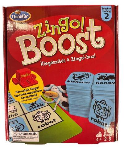 A Zingo - Boost társasjáték kiegészítő - 2-es csomag a Zingo játékhoz készült. A csomagban magyar nyelvű műanyag lapkák találhatók, amelyek még izgalmasabbá és szórakoztatóbbá teszik az alapjátékot. A játék tartalma: 72 db lapocska, 6 db kétoldalas Zingo! tábla, játékszabály.