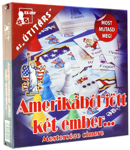 Amerikából jött két ember társasjátékAz Amerikábó l jött két ember társasjáték az Amerikából jöttem játék szabályain alapul, melyet mindenki ismer. Amerikából jött két ember... Mesterségük címere! Dobj... Lépj... Haladj! Teljesítsd a mezőkön előírt feladatokat! Húzz egy kártyát és a kihúzott ábrának megfelelő mesterséget, néma játékkal -csak test- és k