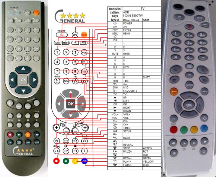 Helyettesítő távirányító I-CAN CSK-3800TW (CSK3800TW) - 100%-os 1:1 arányú helyettesítője az eredeti távirányítónak. A távirányító a I-CAN:ADB ICAN 3800, CSK-3800TW, CSK-3801TW, URC-39860R00-14. (Előfordulhat, hogy nem minden kompatibilis modell szerepel a listában. Ha nem biztos benne, csak adja meg a készülékmodelljét (online chat-en vagy e-mailben), és mi azonnal ellen