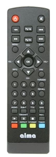 Helyettesítő távirányító ALMA THD2650 - 100%-os 1:1 arányú helyettesítője az eredeti távirányítónak. A távirányító a ALMA:2650 T2 HD, THD-2650, THD-2650T, THD2650, THD2650T. (Előfordulhat, hogy nem minden kompatibilis modell szerepel a listában. Ha nem biztos benne, csak adja meg a készülékmodelljét (online chat-en vagy e-mailben), és mi azonnal ellenőrizzük, if kompatib
