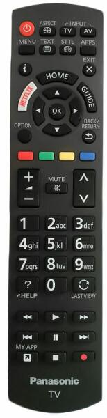 Vadonatúj helyettesítő távirányító PANASONIC N2QAYB000752. A távirányító a PANASONIC:TX-L32E5B, TX-L32E5E, TX-L32E5Y, TX-L32ET5, TX-L32ETW5, TX-L37E5B, TX-L37E5E, TX-L37E5Y, TX-L37ET5, TX-L37ETW5, TX-L37EW5, TX-L42E5B, TX-L42E5E, TX-L42E5Y, TX-L42ET5, TX-L42ET5E, TX-L42ETW5, TX-L42EW5, TX-L47E5B, TX-L47E5E, TX-L47E5Y, TX-L47ET5, TX-L47ETW5, TX-L47EW5, TX-L55ET5, TX-L55ET5E, TX-L55ETW5,