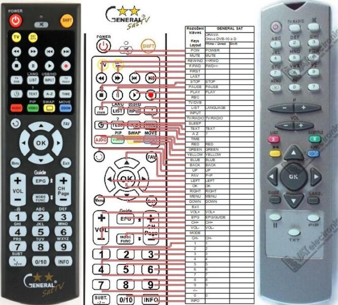 Helyettesítő távirányító HYUNDAI DVB-10, DVB-11 (DVB10, DVB11) - 100%-os 1:1 arányú helyettesítője az eredeti távirányítónak. A távirányító ebben a regisztrált márkájú távirányító változatban kapható. General SAT/TV (balra látható). Garantáljuk, hogy a távirányító az eredeti távirányító minden funkcióját ellátja. Ez nem egy univerzális távirányító, ha