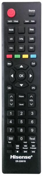Vadonatúj eredeti távirányító HISENSE ER-22601B (ER22601B). A távirányító a HISENSE:32A5100F, 32AE5000F, 32CH59-T2, 40A5100F, A174626, A174640, A174641, A175015, A180336, A180414, A180415, A182302, A182606, A185006, A190804, A190807, A191011, A19490T, A19490Z, A20020C, A20070C, A20070D, A20250E, A20260D, A21041J, A21041K, DEXP F40B7000H, DOFFLER 40CF59-T2, G194416, G19500C, G20085F, G2019