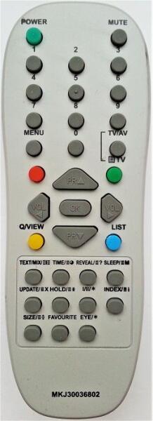 Vadonatúj helyettesítő távirányító LG MKJ30036802. A távirányító a LG:21FS2BLX, 21FS2CLK, 21FS2CLX, 29-FS2BLX, 29FS2BLX. (Előfordulhat, hogy nem minden kompatibilis modell szerepel a listában. Ha nem biztos benne, csak adja meg a készülékmodelljét (online chat-en vagy e-mailben), és mi azonnal ellenőrizzük, if kompatibilis-e az Ön készülékével. Az ellenőrzött kompatibili