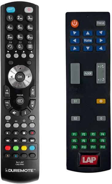 Az eredeti 1:1 arányú duplikátuma távirányító LAP CAD-PRO, CAD-PRO compact (CADPRO, CADPRO compact). A távirányító General Duremote pontosan ugyanazokkal a funkciókkal és gombnevekkel rendelkezik mint az eredeti távirányító. Nincs szükség beállításra és nincs szükség kódokra, csak helyezze bele az elemeket, és máris használható a fent felsorolt modellekkel. A távirá