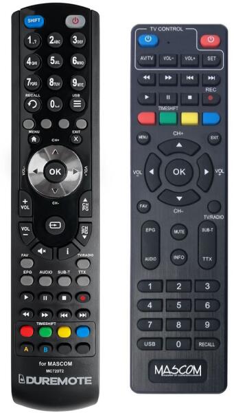 Az eredeti 1:1 arányú duplikátuma távirányító MASCOM MC710T2, MC720T2, MC721T2, MC721 Plus, MC820T2. A távirányító a MASCOM:MC720, MC720T2 HD, MC721, MC721T2 HD, MC820, MC820T2, MC820T2 HD, MC820T2HD. (Előfordulhat, hogy nem minden kompatibilis modell szerepel a listában. Ha nem biztos benne, csak adja meg a készülékmodelljét (online chat-en vagy e-mailben), és mi azonnal ellenő