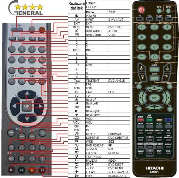 Helyettesítő távirányító HITACHI LHD01 - 100%-os 1:1 arányú helyettesítője az eredeti távirányítónak. A távirányító a HITACHI:L19D01, L19H01, L22D01, L22H01. (Előfordulhat, hogy nem minden kompatibilis modell szerepel a listában. Ha nem biztos benne, csak adja meg a készülékmodelljét (online chat-en vagy e-mailben), és mi azonnal ellenőrizzük, if kompatibilis-e az Ön k