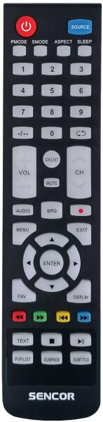 Az eredeti 1:1 arányú duplikátuma távirányító SENCOR SLE2471TCS, SLE3229TCS, SLE43F17TCS. A távirányító a SENCOR:SLE-2471TCS, SLE-3229TCS, SLE-40F17TCS, SLE-43F17TCS, SLE2471TCS, SLE3229TCS, SLE40F17TCS, SLE43F17TCS. (Előfordulhat, hogy nem minden kompatibilis modell szerepel a listában. Ha nem biztos benne, csak adja meg a készülékmodelljét (online chat-en vagy e-mailben), és mi
