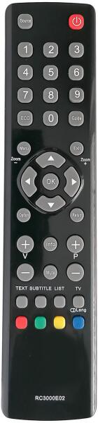 Vadonatúj helyettesítő távirányító THOMSON RC3000E01, RC3000E02, RC2000E02. A távirányító a THOMSON:19HS5246C, 22FS5246C, 22HS4246CW, 23HS3246C, 24FS4246C, 24FS4246CW, 24FS5246C, 24FT4253, 24FT5253, 24FW4323, 26HS2246, 26HS2246C, 26HS3246C, 26HS4246C, 26HS4246CW, 32FS3246, 32FS3246C, 32FS5246C, 32FS6246, 32FT5455, 32FT7563, 32FZ5235, 32HA3103, 32HB3103, 32HC3106, 32HD3306, 32HD3326, 32H