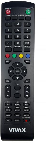 Vadonatúj eredeti távirányító VIVAX 24LE79T2S2, 32LE78T2S2SM, 40LE78T2S2SM, 40LE79T2S2SM, 49LE78T2S2SM. A távirányító a VIVAX:32LE120T2S2, 32LE141T2, 32LE78T2S2SM, 32LE79T2S2, 49LE78T2S2SM, LED TV-40LE78T2S2SM, LED TV-40LE79T2S2SM, LED TV-49LE78T2S2SM, TV-24LE79T2S2, TV-32LE77SM, TV-32LE79T2S2, TV-40LE77SM. (Előfordulhat, hogy nem minden kompatibilis modell szerepel a listában. Ha nem b