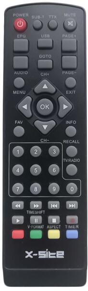 Az eredeti 1:1 arányú duplikátuma távirányító X-SITE DV3103. A távirányító a X-SITE:DV-3103, DV3103. (Előfordulhat, hogy nem minden kompatibilis modell szerepel a listában. Ha nem biztos benne, csak adja meg a készülékmodelljét (online chat-en vagy e-mailben), és mi azonnal ellenőrizzük, if kompatibilis-e az Ön készülékével. Az ellenőrzött kompatibilitást mi garantálju