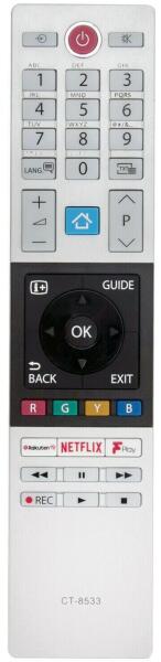 Vadonatúj helyettesítő távirányító TOSHIBA CT-8533 (CT8533). A távirányító a TOSHIBA:24D2863DB, 24D3863DB, 24L2863DB, 24W2863DB, 24W3863DB, 28W2863DB, 28W3863DB, 32D2863DB, 32D3862DB, 32D3863DB, 32L2863DB, 32L3863DB, 32L3963DG, 32W2863DB, 32W3863DB, 40L2863DB, 43L2863DB, 43L3863DB, 43U6863DB, 43V6863DB, 48L2863DB, 49L2863DB, 49L3863DB, 49U6863DB, 49V6863DB, 55U6863DB, 55V6863DB, 65U6863