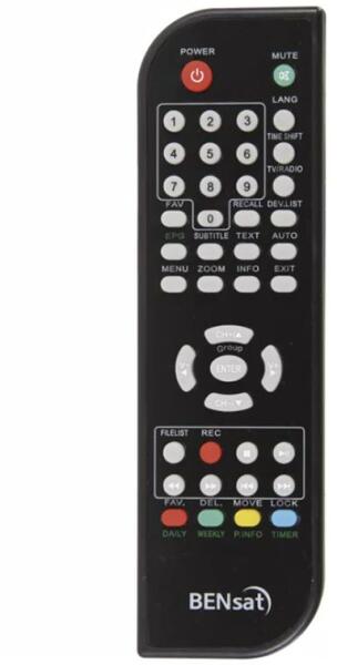 Helyettesítő távirányító BENSAT BEN110, 110FTA - 100%-os 1:1 arányú helyettesítője az eredeti távirányítónak. A távirányító a BENSAT:110FTA, BEN110. (Előfordulhat, hogy nem minden kompatibilis modell szerepel a listában. Ha nem biztos benne, csak adja meg a készülékmodelljét (online chat-en vagy e-mailben), és mi azonnal ellenőrizzük, if kompatibilis-e az Ön készülék