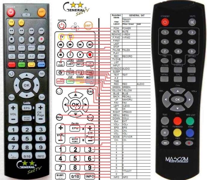 Helyettesítő távirányító CARCLEVER DVB-T2/HEVC/H. 265 (DVBT2/HEVC/H. 265) - 100%-os 1:1 arányú helyettesítője az eredeti távirányítónak. A távirányító ebben a regisztrált márkájú távirányító változatban kapható. General SAT/TV (balra látható). Garantáljuk, hogy a távirányító az eredeti távirányító minden funkcióját ellátja. Ez nem egy univerzális távirá