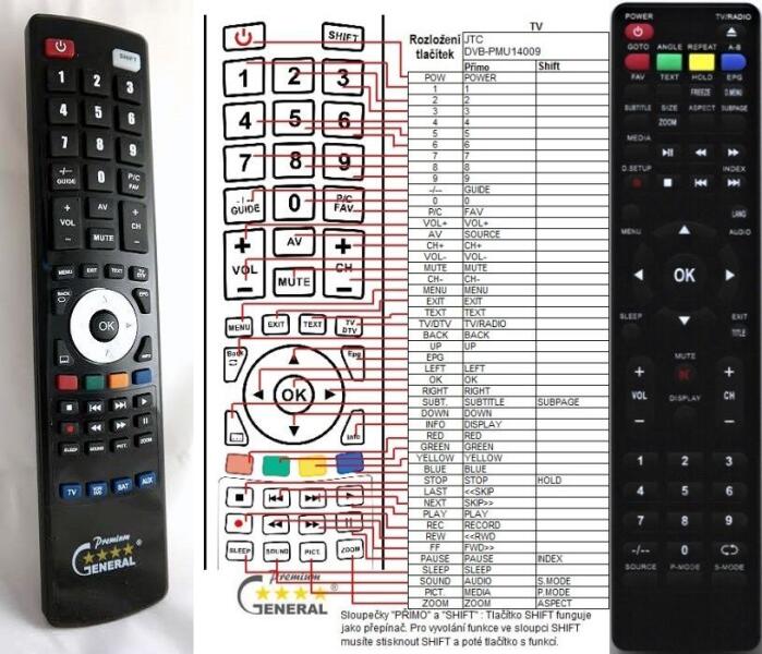 Helyettesítő távirányító JTC DVBPUM14009 - 100%-os 1:1 arányú helyettesítője az eredeti távirányítónak. A távirányító a JTC:DVB-PM14009HCATS, DVB-PUM14009, DVBPM14009HCATS, DVBPUM14009. (Előfordulhat, hogy nem minden kompatibilis modell szerepel a listában. Ha nem biztos benne, csak adja meg a készülékmodelljét (online chat-en vagy e-mailben), és mi azonnal ellenőrizzük,