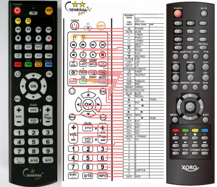 Helyettesítő távirányító XORO HRT-7510 (HRT7510) - 100%-os 1:1 arányú helyettesítője az eredeti távirányítónak. A távirányító a XORO:HRT-7510, HRT7510. (Előfordulhat, hogy nem minden kompatibilis modell szerepel a listában. Ha nem biztos benne, csak adja meg a készülékmodelljét (online chat-en vagy e-mailben), és mi azonnal ellenőrizzük, if kompatibilis-e az Ön készül