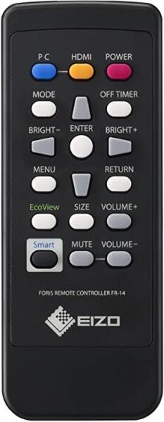 Helyettesítő távirányító EIZO FR-14 (FR14) - 100%-os 1:1 arányú helyettesítője az eredeti távirányítónak. A távirányító a EIZO:FORIS FS2434, FORISFS2434, FS2333-BK, FS2333BK. (Előfordulhat, hogy nem minden kompatibilis modell szerepel a listában. Ha nem biztos benne, csak adja meg a készülékmodelljét (online chat-en vagy e-mailben), és mi azonnal ellenőrizzük, if kompati