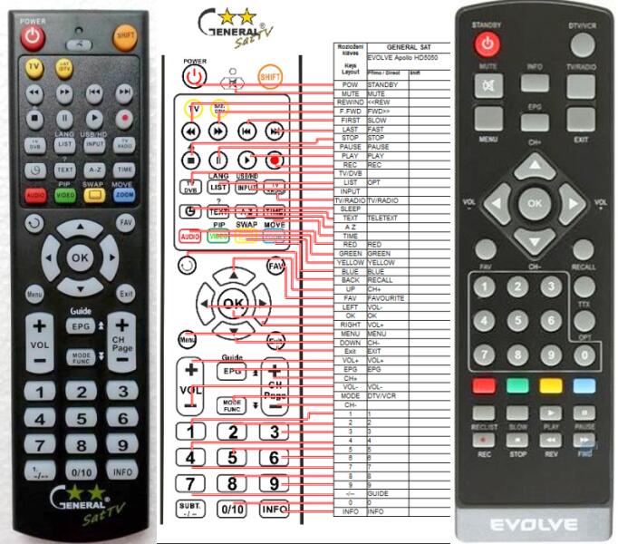 Helyettesítő távirányító EVOLVEO APOLLO HD5050, SCORPION - 100%-os 1:1 arányú helyettesítője az eredeti távirányítónak. A távirányító a EVOLVEO:APOLLO HD-5050, APOLLO HD5050, SCORPION. (Előfordulhat, hogy nem minden kompatibilis modell szerepel a listában. Ha nem biztos benne, csak adja meg a készülékmodelljét (online chat-en vagy e-mailben), és mi azonnal ellenőrizzük,