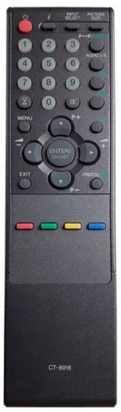 Helyettesítő távirányító TOSHIBA CT-8016 (CT8016) - 100%-os 1:1 arányú helyettesítője az eredeti távirányítónak. A távirányító a TOSHIBA:14 VL43P, 14N21BB, 14VL43P, 20 VL43, 20 VL43P, 20VL43, 20VL43P, 26W300P, 26W300PG, 26WL36P, 27 WL56P, 27WL56P, 28 ZD26BP, 28 ZD26P, 28ZD26BP, 28ZD26P, 28ZH36B, 28ZH36P, 28ZH37P, 28ZH47P, 32 W300PS, 32 WL48P, 32 WL58P, 32 ZD26P, 32 ZD36P, 32 ZH36