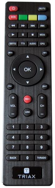 Az eredeti 1:1 arányú duplikátuma távirányító TRIAX TR63. A távirányító a TRIAX:TR-43, TR-63, TR43, TR63. (Előfordulhat, hogy nem minden kompatibilis modell szerepel a listában. Ha nem biztos benne, csak adja meg a készülékmodelljét (online chat-en vagy e-mailben), és mi azonnal ellenőrizzük, if kompatibilis-e az Ön készülékével. Az ellenőrzött kompatibilitást mi garant