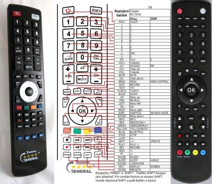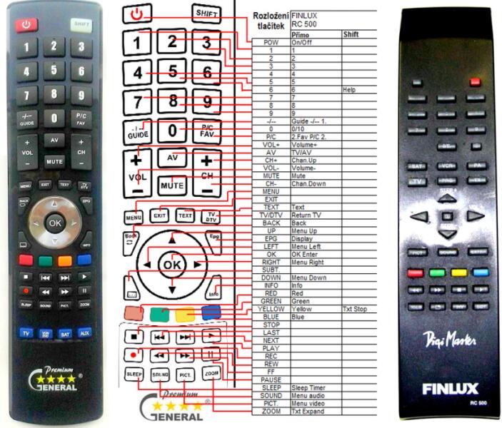 Helyettesítő távirányító FINLUX RC500 - 100%-os 1:1 arányú helyettesítője az eredeti távirányítónak. A távirányító a FINLUX:5025, 5025C TX, 5025CTX, 5025K, 5028K. (Előfordulhat, hogy nem minden kompatibilis modell szerepel a listában. Ha nem biztos benne, csak adja meg a készülékmodelljét (online chat-en vagy e-mailben), és mi azonnal ellenőrizzük, if kompatibilis-e az