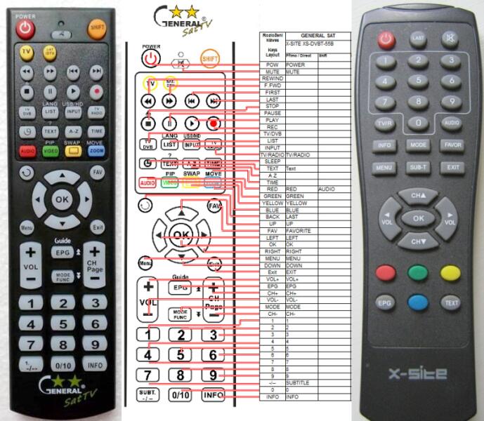 Helyettesítő távirányító X-SITE XS-DVBT-55B (XSDVBT55B) - 100%-os 1:1 arányú helyettesítője az eredeti távirányítónak. A távirányító a X-SITE:XS-DVBT-55B. (Előfordulhat, hogy nem minden kompatibilis modell szerepel a listában. Ha nem biztos benne, csak adja meg a készülékmodelljét (online chat-en vagy e-mailben), és mi azonnal ellenőrizzük, if kompatibilis-e az Ön kész
