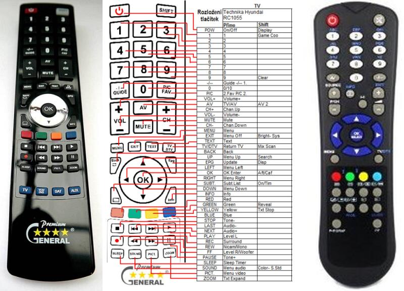 Helyettesítő távirányító HITACHI RC1055 - 100%-os 1:1 arányú helyettesítője az eredeti távirányítónak. A távirányító ebben a regisztrált márkájú távirányító változatban kapható. General Premium (balra látható). Garantáljuk, hogy a távirányító az eredeti távirányító minden funkcióját ellátja. Ez nem egy univerzális távirányító, hanem olyan, amely közv