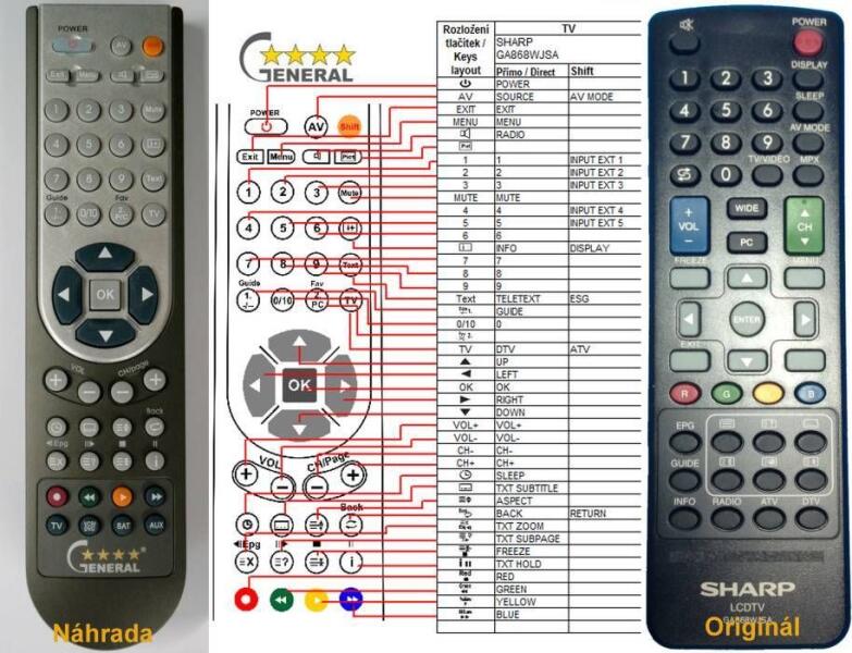 Helyettesítő távirányító SHARP GA868WJSA - 100%-os 1:1 arányú helyettesítője az eredeti távirányítónak. A távirányító a SHARP:LC19LE520X, LC22LE520X, LC32L400X. (Előfordulhat, hogy nem minden kompatibilis modell szerepel a listában. Ha nem biztos benne, csak adja meg a készülékmodelljét (online chat-en vagy e-mailben), és mi azonnal ellenőrizzük, if kompatibilis-e az Ön