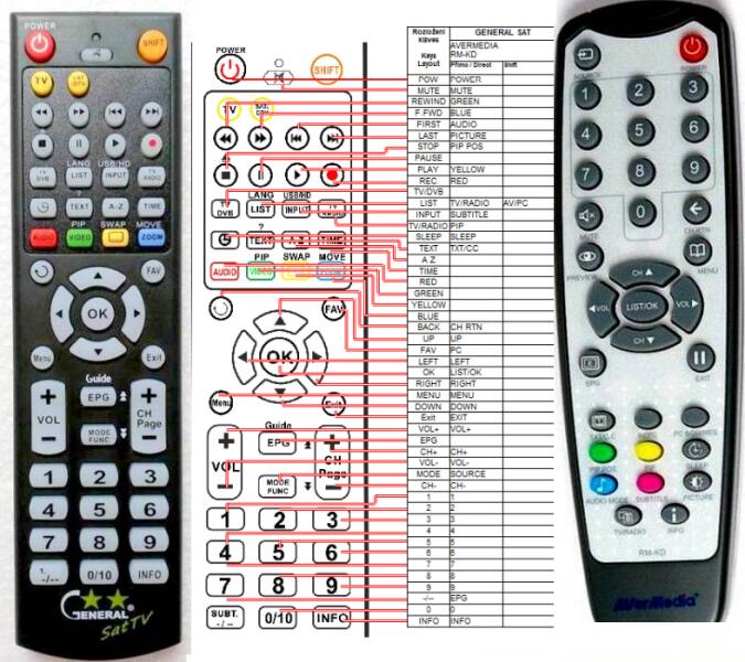 Helyettesítő távirányító AVERMEDIA AVERTV HYBRID STB 1080I - 100%-os 1:1 arányú helyettesítője az eredeti távirányítónak. A távirányító a AVERMEDIA:AVERTV HYBRID STB 1080I, STB1080I. (Előfordulhat, hogy nem minden kompatibilis modell szerepel a listában. Ha nem biztos benne, csak adja meg a készülékmodelljét (online chat-en vagy e-mailben), és mi azonnal ellenőrizzük, if