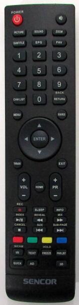 Vadonatúj eredeti távirányító SENCOR SLE40F57TCS, SLE43F57TCS, SLE49F57TCS, SLE40F58TCS, SLE43F58TCS. A távirányító a SENCOR:SLE2460TCS, SLE2461TCS, SLE3257TCS, SLE40F57TCS, SLE43F57TCS, SLE43US500TCS, SLE49F57TCS, SLE49US500TCS, SLE55US500TCS, SLE58F58TCS. (Előfordulhat, hogy nem minden kompatibilis modell szerepel a listában. Ha nem biztos benne, csak adja meg a készülékmodelljét
