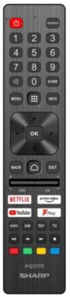 Helyettesítő távirányító SHARP SHW/RMC/0137N - 100%-os 1:1 arányú helyettesítője az eredeti távirányítónak. A távirányító a SHARP:24FH2EA, 32FH2EA, 32FH2EW, 32FH2KA, 32FH8EA, 40FH2EL, 43FH2AE, 50FP1EA, 55FL1EA, 55FL1KA, 55FN1EA, 65FN7EA, 70FH2EA, AN4512C2UM007. (Előfordulhat, hogy nem minden kompatibilis modell szerepel a listában. Ha nem biztos benne, csak adja meg a készül