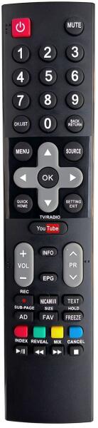 Vadonatúj helyettesítő távirányító TECHWOOD F39T52C, F40T52D, H32T52C, U40T52C, U50T52D. A távirányító a TECHWOOD:F39T52C, F40T52D, H32T52C, U40T52C, U50T52D. (Előfordulhat, hogy nem minden kompatibilis modell szerepel a listában. Ha nem biztos benne, csak adja meg a készülékmodelljét (online chat-en vagy e-mailben), és mi azonnal ellenőrizzük, if kompatibilis-e az Ön készül