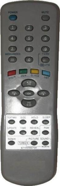 Vadonatúj helyettesítő távirányító LG 6710V00070A. A távirányító a LG:CE-20F60KX, CE-21Q62KEX, CE20F60KX, CE21F60KX, CE21F60X, CE21M66KX, CE21Q62KEX, CE21T22KX, CE21T28ET, CF-20D36EX, CF-21D36EX, CF-21S13KX, CF-21S15X, CF-21S31KEX, CF20D36EX, CF21D36EX, CF21S13KX, CF21S15X, CF21S31KEX. (Előfordulhat, hogy nem minden kompatibilis modell szerepel a listában. Ha nem biztos benne, csak ad