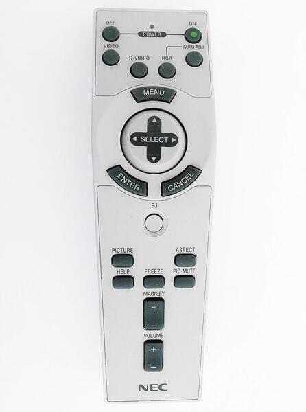 Helyettesítő távirányító NEC RD-394E (RD394E) - 100%-os 1:1 arányú helyettesítője az eredeti távirányítónak. A távirányító a NEC:MT1060, MT1065, MT860, NP4000, NP4100, NP4100W, VT440GK, VT460K, VT560, VT560G, VT660K. (Előfordulhat, hogy nem minden kompatibilis modell szerepel a listában. Ha nem biztos benne, csak adja meg a készülékmodelljét (online chat-en vagy e-mailben),