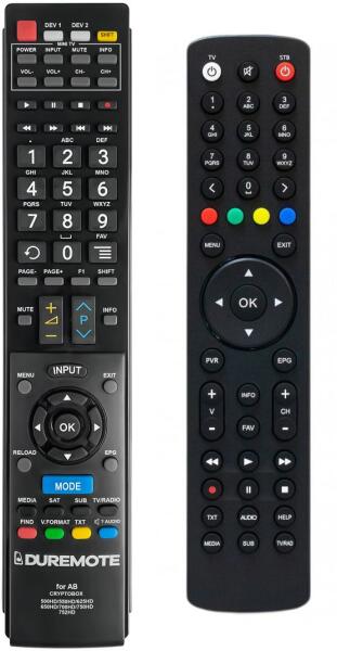 Az eredeti 1:1 arányú duplikátuma távirányító AB CRYPTOBOX ALL models (CryptoBox/PULSe). A távirányító a AB CRYPTOBOX: 400HD MINI, 500HD, 500HD MINI, 550HD, 550HDC, 600HD, 600HD MINI, 650HD, 650HDC, 652HD COMBO, 700HD, 702T HD, 702T MINI HD, 750HD, 752HD, 800 UHD, AB TEREBOX 2T, CRYPTOBOX 2T, PULSE 4K, PULSE 4K MINI, SMART, 400HD, 450HD. (Előfordulhat, hogy nem minden kompatibilis mode