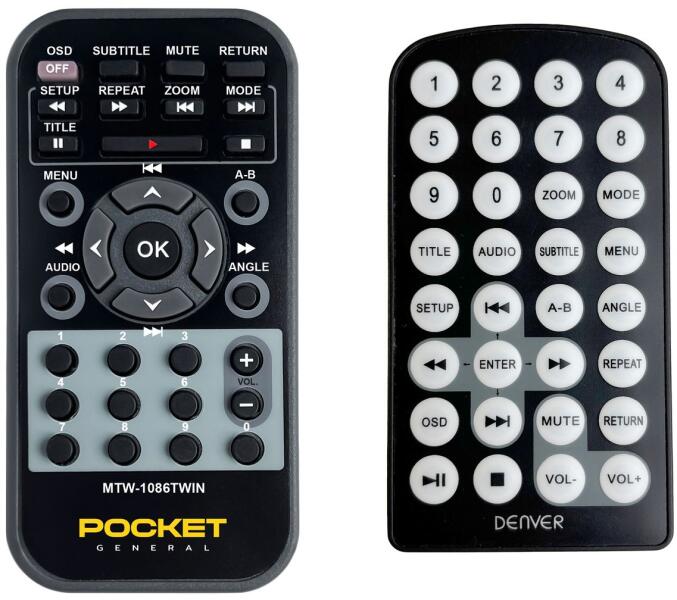 Az eredeti 1:1 arányú duplikátuma távirányító DENVER MTW-1086TWIN (MTW1086TWIN). A távirányító General POCKET duplicate pontosan ugyanazokkal a funkciókkal és gombnevekkel rendelkezik mint az eredeti távirányító. Nincs szükség beállításra és nincs szükség kódokra, csak helyezze bele az elemeket, és máris használható a fent felsorolt modellekkel. A távirányító ebbe