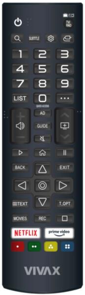 Vadonatúj eredeti távirányító VIVAX TV-43S60WO (TV43S60WO). A távirányítót több márka számára gyártják, ezért előfordulhat, hogy a logó eltérő vagy hiányzik. Még ha a logó hiányzik is, akkor is az eredeti távirányítóról van szó. Ez egy vadonatúj eredeti OEM távirányító, így nem igényel párosítást, beállítást vagy bármilyen kódot. Csak helyezze be az ele